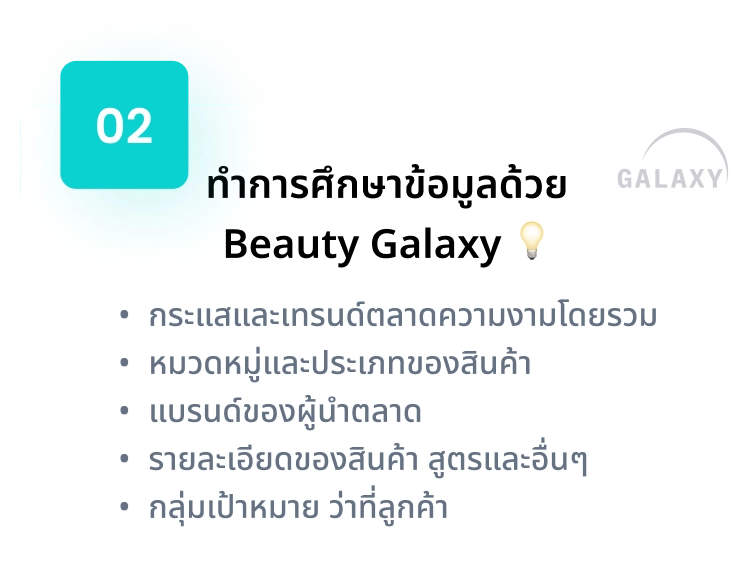 - รวบรวมและนำเสนอสถิติที่สำคัญในโลกความงาม ที่ช่วยให้เจ้าของแบรนด์เห็นภาพรวมและทิศทางของโลกความงามได้กระจ่างชัดขึ้น