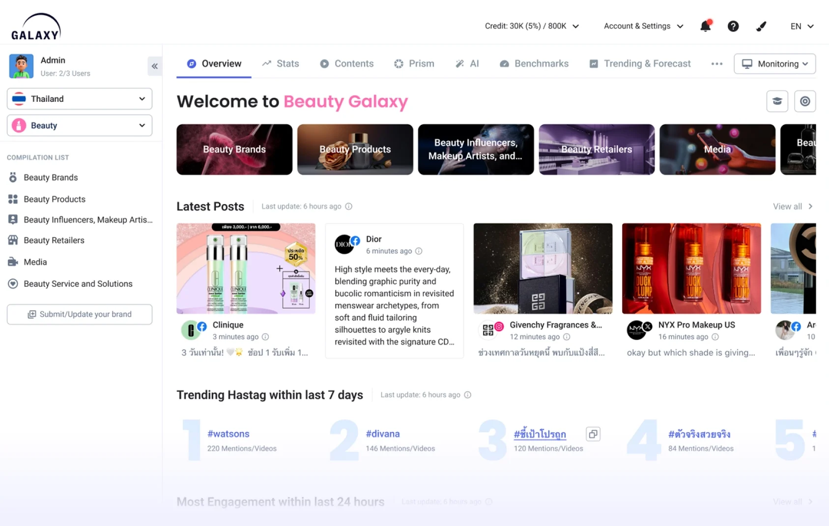 แพลตฟอร์ม Beauty Galaxy มีข้อมูล ที่สดใหม่ สกัดตามหมวดหมู่ความงาม มากกว่า 12,000+ แบรนด์