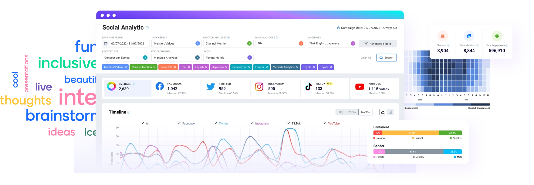 - มาพร้อมกับระบบเอไอที่ทรงพลังที่ช่วยวิเคราะห์คอนเทนต์ อาทิ การคัดแยกโพสเชิงบวกและเชิงลบ (Sentiment) ทำให้เห็นมุมมองของคอนเทนต์ที่ลึกอีกระดับ เป็นต้น